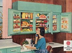 The 1950's did have its share of frozen. And really post war American, with its over abundance of energy, electricity, and factories wanting to pump out something to replace all the weapons they had been making, certainly provided the 1950's housewife with a great selection of freezers and food to go in it. Any way you slice it, the ease of frozen and ready made foods can make dinner time pretty simple and you can 'add in' as much high end or local grown items as you choose. I still prefer homemade, as I am not a fan of GMO foods nor the unknown put into processed eating, sometimes a gal is just lazy. I hope, however, to never be so lazy as to need a frozen Thanksgiving TV dinner.